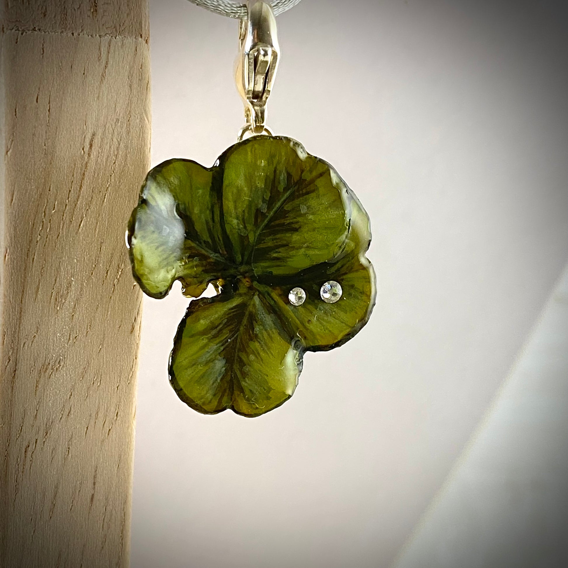 Ogni singolo charm è creato con un vero quadrifoglio. Raccolto nei prati e lavorato per farlo diventare un gioiello. È il regalo perfetto per una persona che possiede tutto. Puoi anche richiedere una personalizzazione.